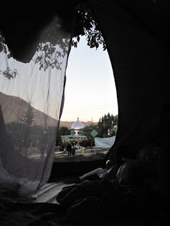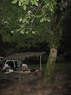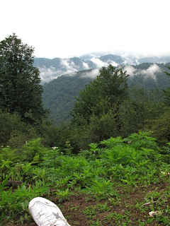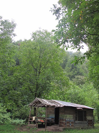 به دنبال جایی برای چادر زدن گشتیم و آدرس کلبه درویش را دادند. صاحبش مردی بود که زمین بزرگی از جنگل را حصار کشیده بود و در ان کلبه های چوبی ساخته بود که اجاره می داد شبی 45 تومن.