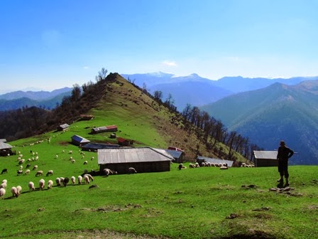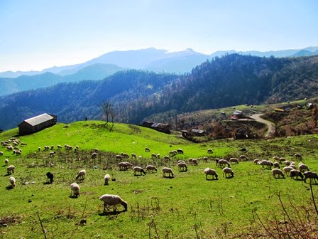 بالاتر درختهاي تمام شده بودند و تنها چمن سبز يك دستي روي نوك كوه را پوشانده بود. گوسفندها در مسيرهاي از پيش تعييين شده خطي سفيد بر زمين سبز ايجاد مي كردند و در روبرو كوه رنگيني بود كه سر به ابرها مي سايد