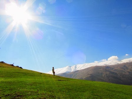 به سمت نوك تپه بالا رفتيم جايي كه تنها اسمان ابي بود و زمين سبز