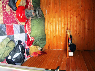 مرد جوان بخاری نفتی را در اتاق ما گذاشت و در حالی که خیس تلیس شده بودیم وسایل را از ماشین به اتاق بردیم. یک ماشین دیگر خیالمان را راحت کرد که تنها نیستم و آقای خرسندی هم به ما اطمینان داد که اتاق کناری ما را به خانواده خواهد داد(اخه یه در مشترک بین دو اتاق بود)